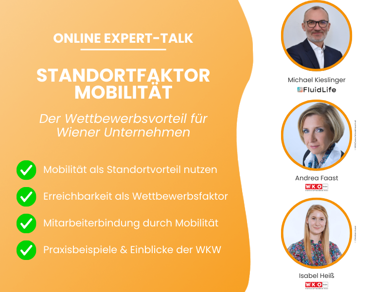 Erfahre im Expert Talk, warum Mobilität zum entscheidenden Standortfaktor wird und wie Unternehmen sie gezielt als Wettbewerbsvorteil nutzen können. Die Wirtschaftskammer Wien zeigt, wie betriebliche Mobilität Standorte stärkt, Fachkräfte anzieht und langfristig zur strategischen Erfolgsbasis wird.